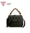 Elegant Quilt designed handbag . Top handle. Multiple compartments. Guess name Logo. Comes with charms and embelishments to make it look extremely attractive. Perfect to be carried at work & parties.