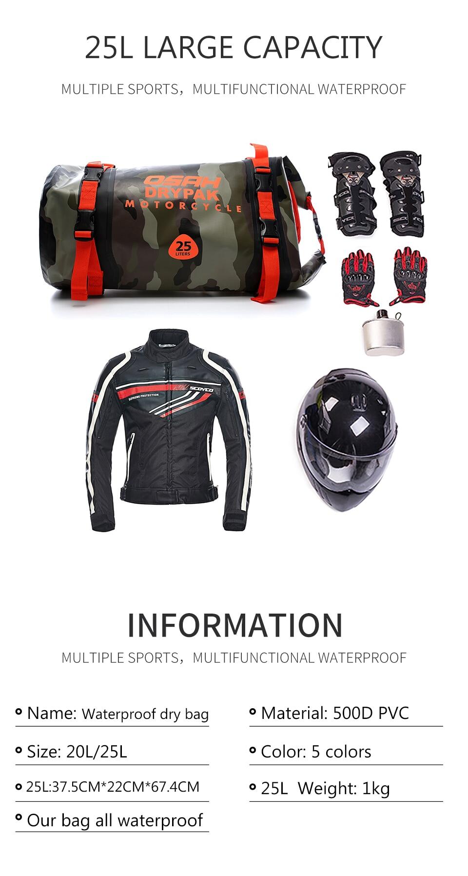 OSAH DRYPAK Motorcycle PVC Tail Bag Motorbike Motocross Waterproof Dry Luggage Outdoor Roll Pack Saddle Rear Seat Bag