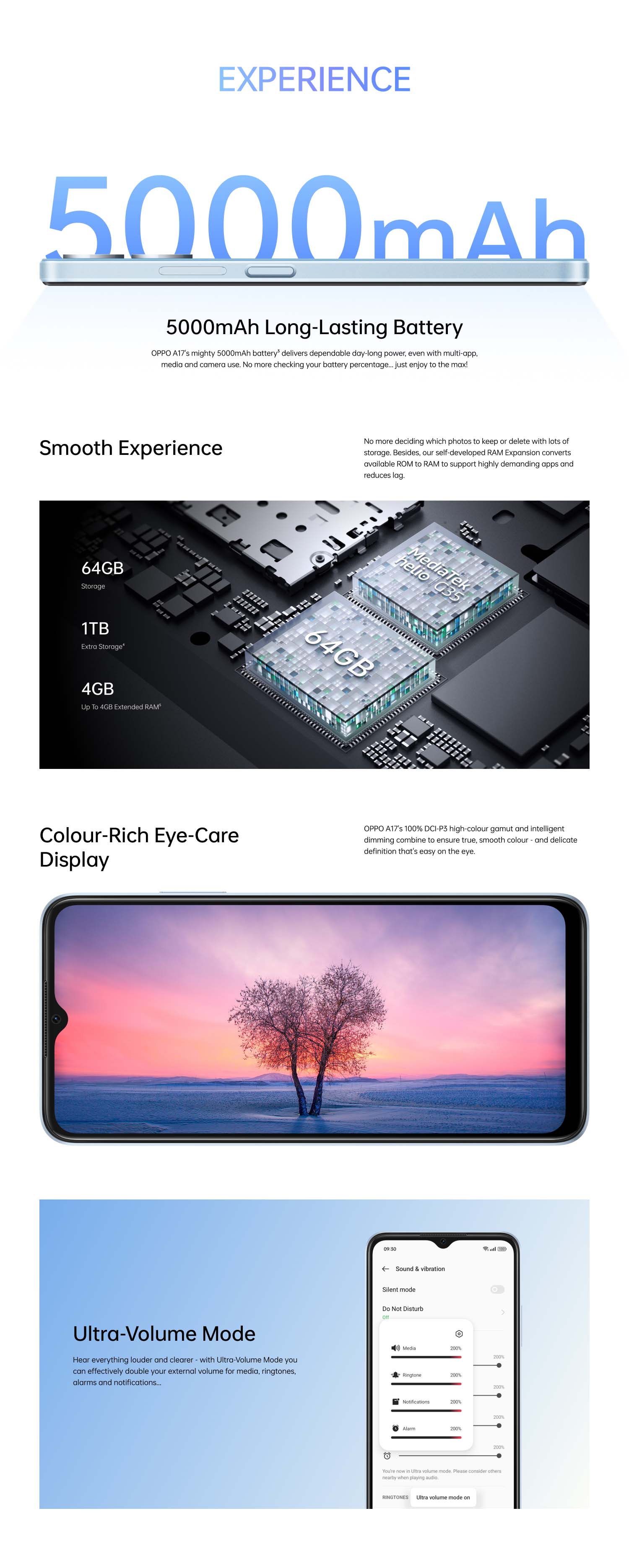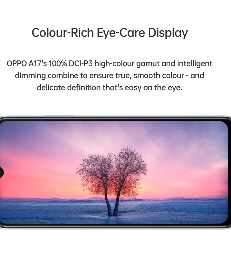 Featuring RAM and ROM Expansion and upgraded Dirac 3.0 audio, the OPPO A17 provides efficient and powerful performance.