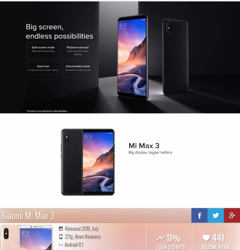 【全新密封】全球版小米Max 3 64GB ROM 4GB RAM