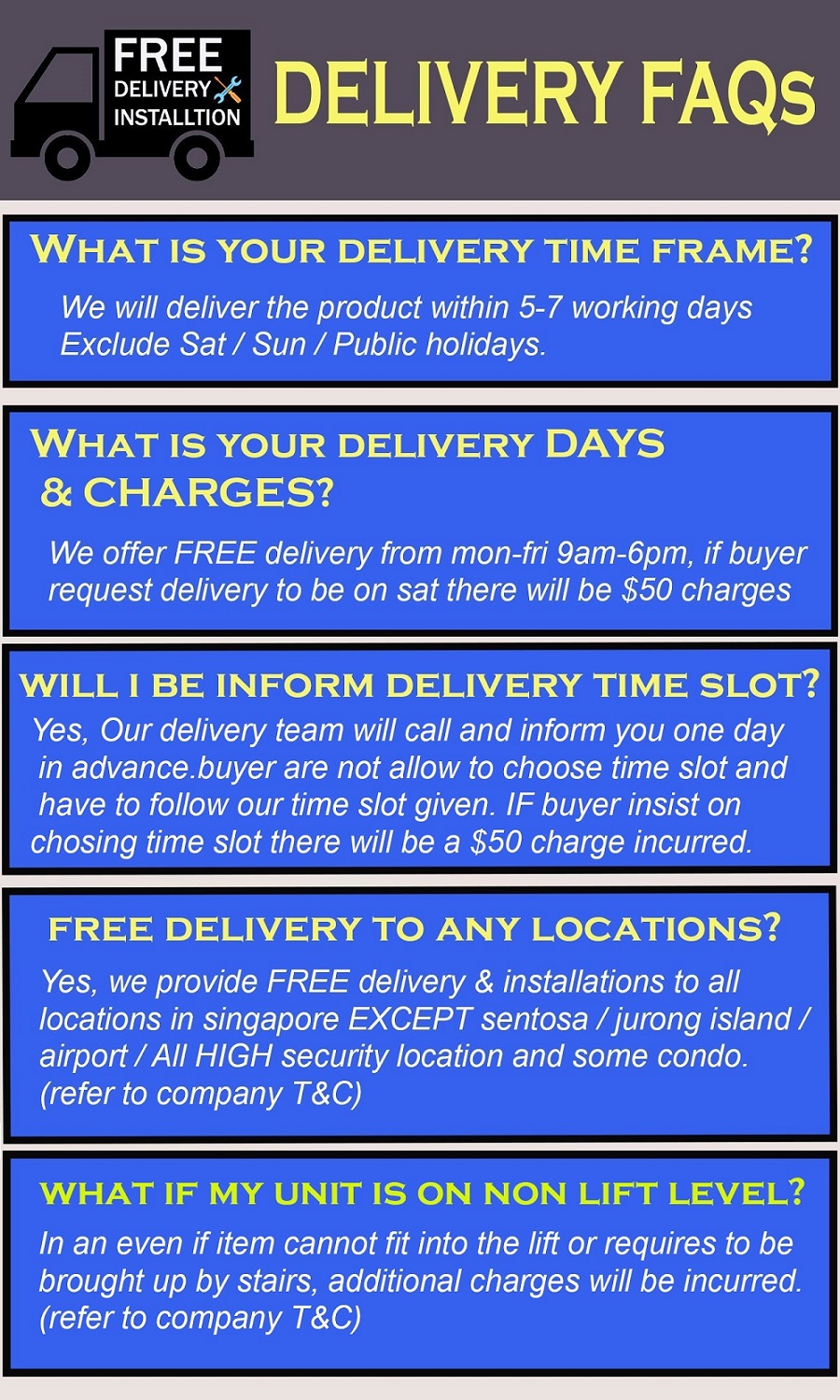 FREE DELIVERY & INSTALLATIONS! NO GIMMICKS!